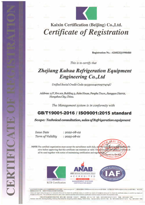 庫華制冷質(zhì)量管理體系認(rèn)證