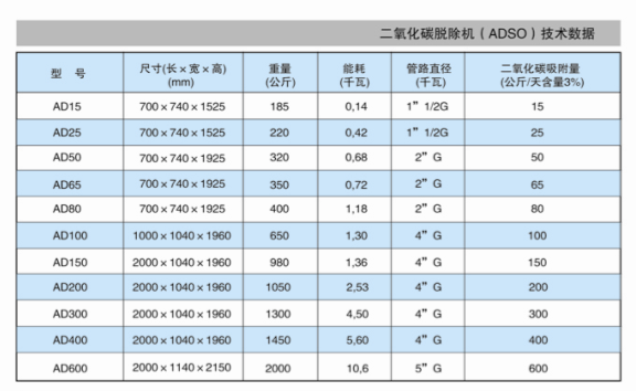 氣調(diào)冷庫安裝設備二氧化氮脫除機(ADSO)技術數(shù)據(jù)展示圖: