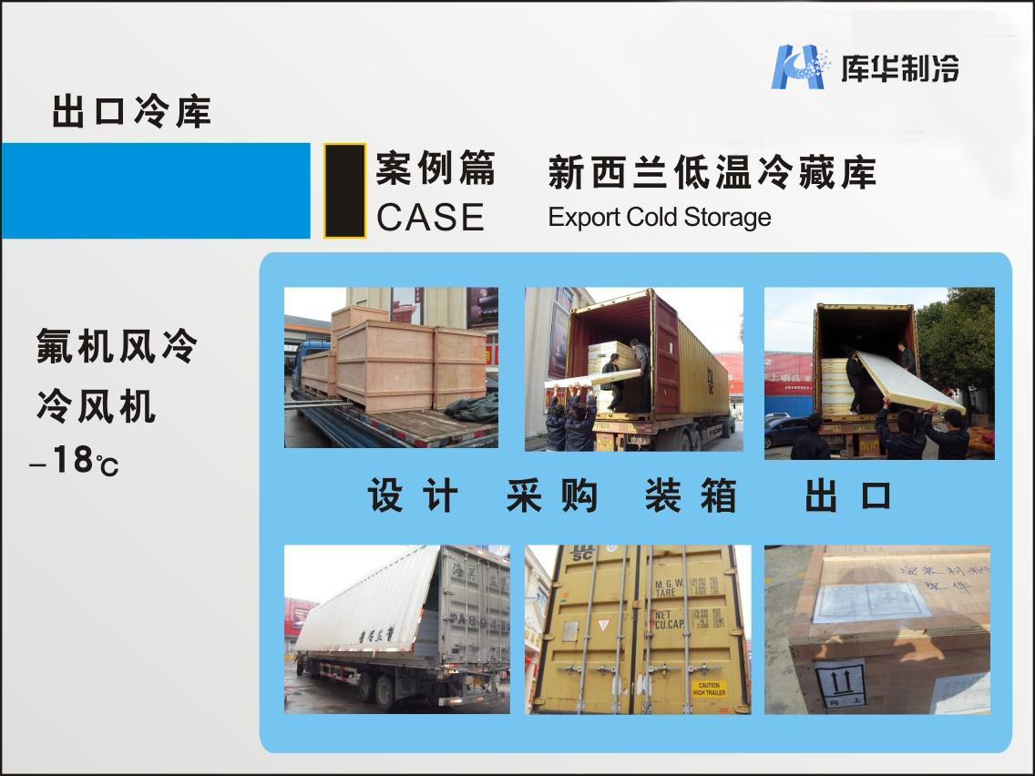 出口冷庫:氟機(jī)風(fēng)冷冷風(fēng)機(jī)-18度新西蘭低溫冷藏庫安裝圖片展示